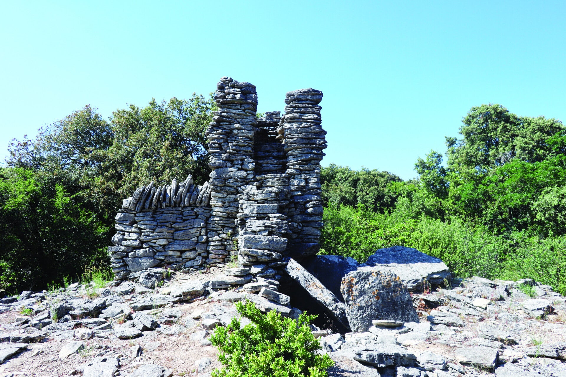 Située dans une région densément occupée au Néolithique Final où 1300 sites ont été recensés, la nécropole des Géandes compte six dolmens. Cinq sont espacés d’environ 150 m l’un de l’autre et l’un semble légèrement isolé par rapport au groupe principal d’Ardèche.