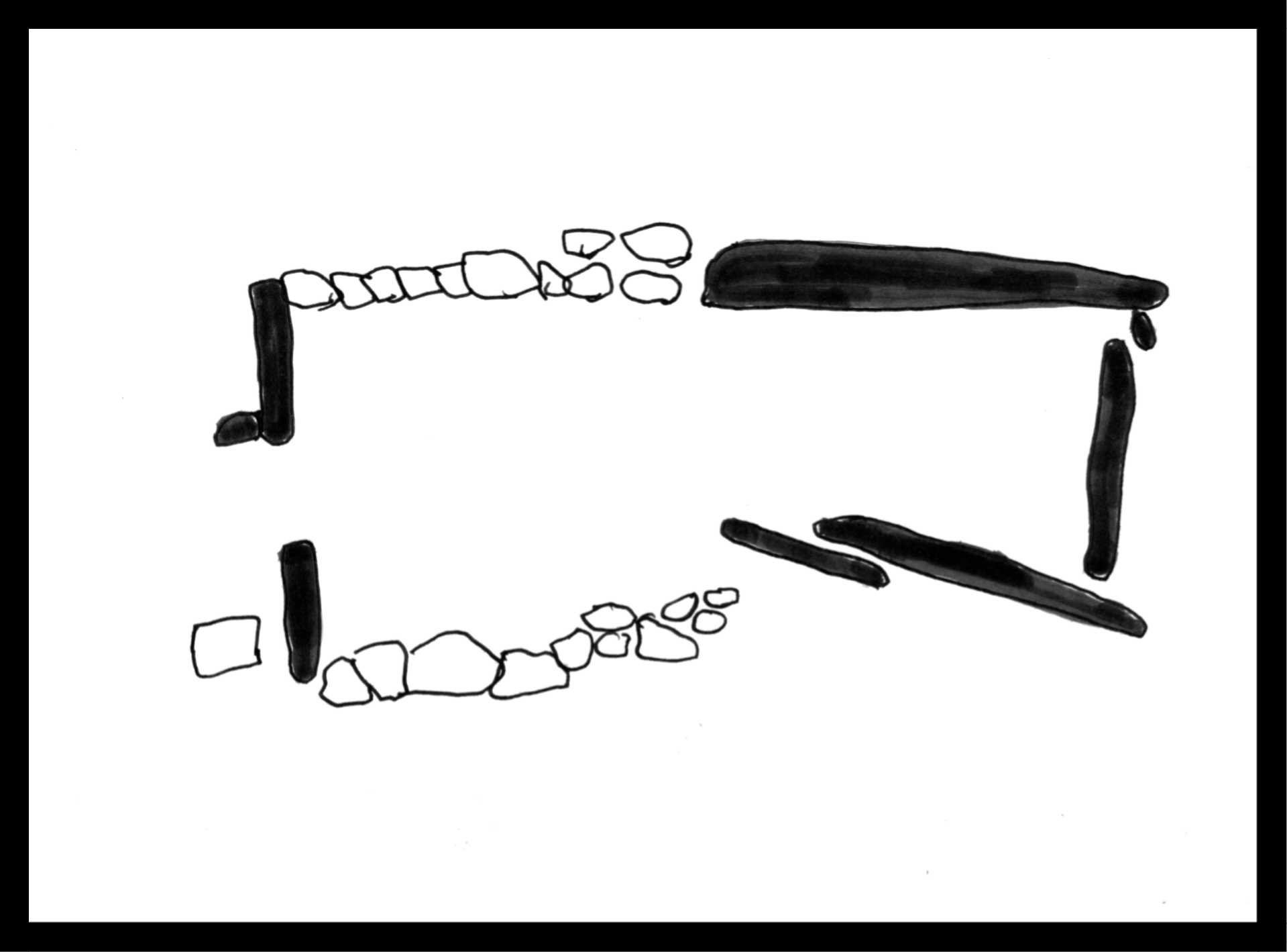 Des fragments de dalle épars doivent être les restes de la couverture. Le tumulus mesure 14 m x 11 m. Les pierres le constituant ont été empilées avec soin et jointoyées avec une terre argileuse. Aucune structure l’entourant ou de péristalithe n’a été détecté. En règle générale pour toute la nécropole, l’état de conservation des tumulus n’a pas permis de déterminer les aménagements extérieurs. Les restes d’un couloir se devinent.